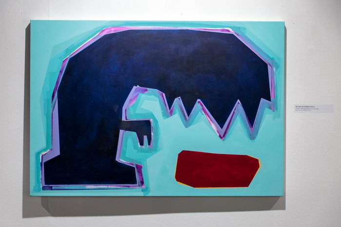 Pomolzi me s pogledom je absurdna minimalistična komedija o Bikcu in njegovi Biti, ki se prepleta skozi video-slikarsko instalacijo. Razstavo sestavlja 7 platen in krajša animacija. Skozi abstrakten preplet oblik se predstavlja zgodba eksistencialistične krize Bikca, ki poskuša uteči svojemu lastnemu jazu. Seveda neuspešno. Slikarska platna so nastala kot poglobljen del zgodborisa, torej so podlaga končnemu produktu – animaciji. V slikarskih delih umetnica obravnava abstraktno obliko kot samostojno celoto, pri kateri je naslov (dela) enakovreden del slikarske kompozicije. Abstraktna oblika in naslov se dopolnjujeta in skupaj tvorita zgodbo slike, ki je samo slika in ne predstavlja nič drugega kot samo sebe. Animacija na drugi strani predstavlja nadgradnjo slikarskih del in jih premešča iz statičnosti v gibljivo podobo.