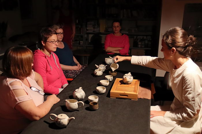 Čaj za pet: Opijske ladje je vizualni esej, ki skozi čajni obred združuje poslikano keramiko