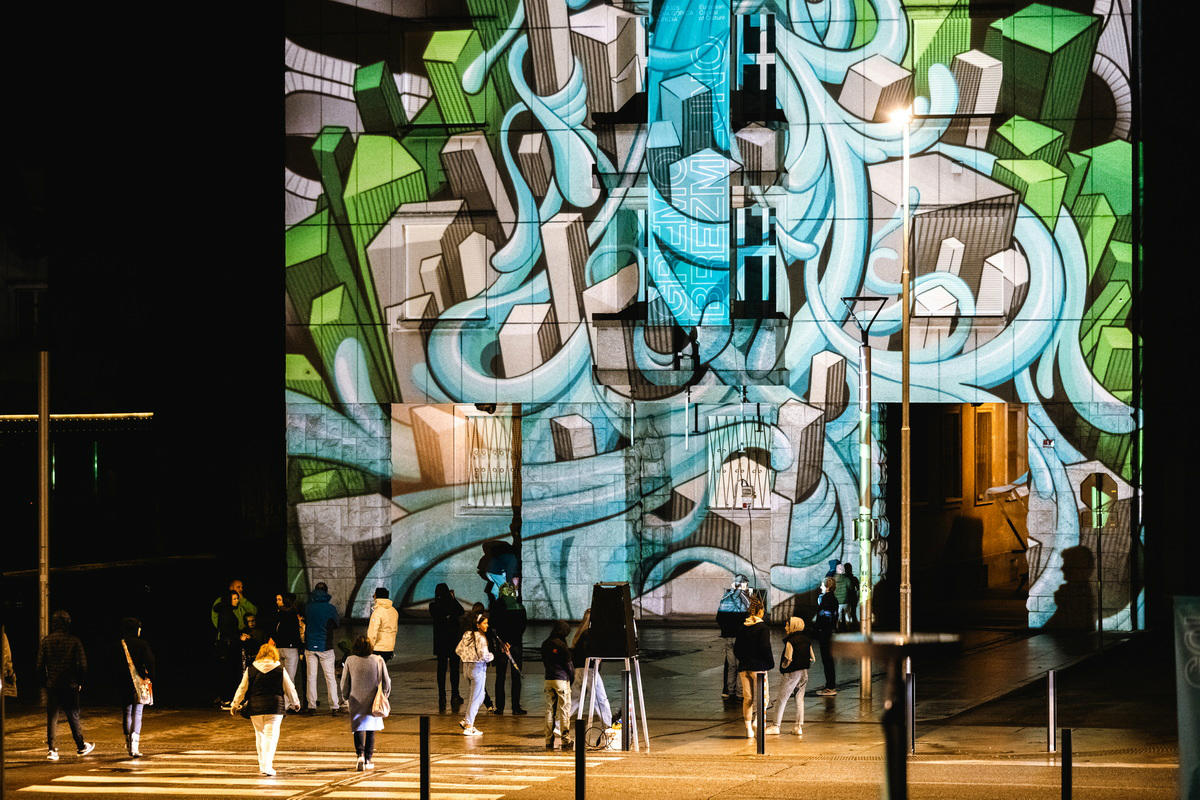 Umetnika madžarskega kolektiva Lightspray Visual (Fényszóró Visual) že več kot 15 let ustvarjata dela z analogno svetlobo. Pri ustvarjalnem delu uporabljata stare grafoskope z močnimi žarnicami ter z njimi projicirata barvne podobe na stavbne površine in spomenike. Slikam vdahneta življenje s pomočjo posebnih naprav, ki sta jih ustvarila sama in jih je mogoče namestiti na grafoskop ter pri tem doseči učinek, ki spominja na kinetične skulpture velikih dimenzij. Tako ne nastane zanimiva le projekcija, ampak zanimiv element instalacije postane tudi sam projektor.