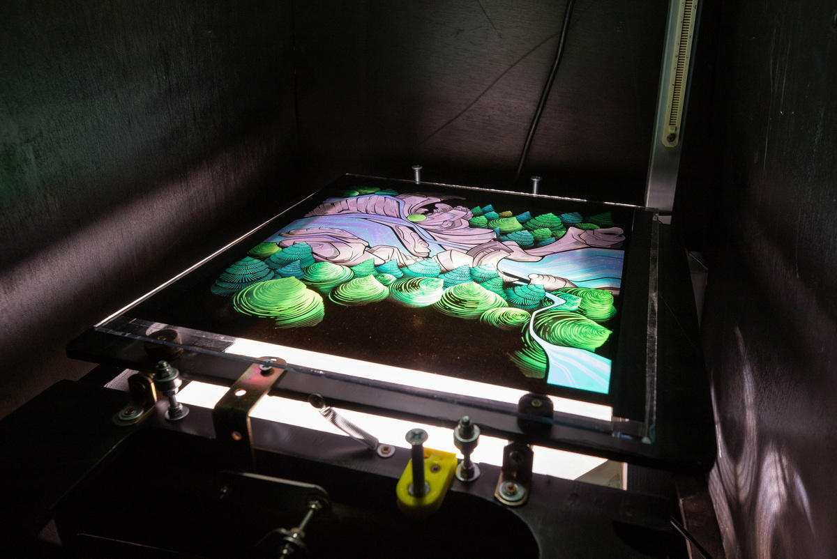 Ta formativna izkušnja tandema je opredelila tudi tehnološke specifike njegovega dela. Pri ustvarjalnem delu umetnika, ki delujeta kot Lightspray Visual, namreč uporabljata stare grafoskope z močnimi žarnicami ter z njimi projicirata barvne podobe na stavbne površine in spomenike. Svoje podobe poganjata v gibanje s pomočjo posebnih naprav, ki sta jih ustvarila sama in jih je mogoče namestiti na grafoskop, s čimer ustvarjata učinek, ki spominja na kinetične skulpture veličastnih dimenzij. V resnici te impozantne stvaritve v svoji transmedijskosti tandema združujejo načela treh klasičnih medijev: njihovo izhodišče je, kot bomo videli v nadaljevanju, vezano na fotografijo; logika ustvarjanja podobe in njen učinek sta pogosto eksplicitno slikarska, medtem ko je že sam tehnološki element, ki to omogoča, konstitutivno vključen v samo delo, njegovo izkušnjo, v določenem duhu instalacije. Ta hibridni eksperimentalni pristop lahko povežemo z njunim formativnim obdobjem v kulturni skupnosti, kjer so prijateljske vezi navdihovale umetniške rešitve. V omenjenem kulturnem združenju sta svoje formativne izkušnje dobila v sodelovanju s kolegi – profesionalnimi fotografi, ki so svoja dela razvijali na diapozitive in jih potem projicirali na platna s pomočjo diaprojektorjev. Iz tega je kolektiv Lightspray Visual začel razvijati prijeme, ki so najprej vsebovali slikanje na steklene plošče podobnih velikosti in njihove diaprojekcije, čemur verjetno dolgujemo neizpodbitno slikarsko dimenzijo v delu kolektiva. Po teh izhodiščnih eksperimentih z diaprojektorji sta umetnika kmalu začela v projektih uporabljati grafoskope, ki tako značilno opredeljujejo njuno prakso danes. Tej potezi je po eni strani botrovalo dejstvo, da jim le ti omogočijo večje površine za »slikanje« in so enostavnejši za uporabo, po drugi strani se jim lahko zamenja svetlobni vir za tiste, ki so primernejši za projiciranje na velike površine. To jima je v izhodišču omogočilo štirikrat močnejšo svetlobnost, po nadaljnjih eksperimentih pa sta jo uspela povečati za celo šestnajstkrat v primerjavi s tovarniškimi izdelki!