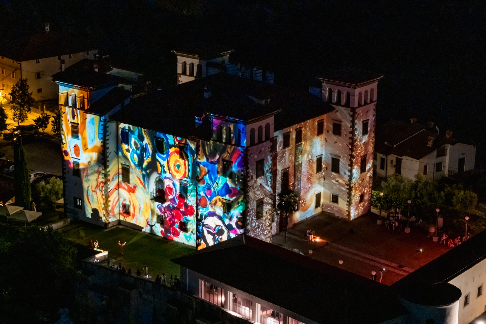 Zdi se mi, da sta nasploh ta dva momenta, narativnost in transformativnost, bistvena za razumevanje delovanja tandema LuMenArtist. Abstraktna narava njegovih predlog služi kot široko odprta zaloga sugestivnosti, ki v dinamičnih svetlobnih kompozicijah pušča domišljiji prosto pot v ustvarjanja najrazličnejših zgodb. Po drugi strani so izkušnje, ki jih ustvarja, izrazito transformativne. To velja tudi na ravni samih abstraktnih motivov, ki so v nenehni premeni, prehajanju. Pri tem si roko podajata momenta abstrakcije in fluidnosti, saj v projekcijah tandema sledimo spremembam, ki jih lahko beremo tudi povsem slikarsko, od Kniferjevih meandrov do mehurjastih op-art površin, barvitih spektaklov s hipnotičnimi vrtinci, nasičenih kompozicij à la Pollock, mehkih prehodov od geometričnega do tandemu veliko bližjega organskega. Vendar je transformativnost, na katero meri njihovo delo, če sodimo po dogodku v Dobrovem, več kot le vizualna, je sinestetična izkušnja, ki v obogateni fenomenologiji sveta okoli sebe meri na duhovno spremembo. Zato ne preseneča, da so določene projekcije, posebej tiste na levi strani gradu, tako zelo spominjale na gotske vitraže, njihove barvne rozete, krogovičje, elongirane floralne motive in celo kakšno duhovito srednjeveško vinjeto. Metafizika svetlobe je bila v osrčju navduševanja nad velikimi cerkvenimi okni poznega srednjega veka, v kateri postane prav ta metaforika poti do človekovega zveličanja. Transformativno moč svetlobe tandem LuMenArtist bogato uporablja v podobnih, a hkrati veliko bolj imanentnih, na tuzemstvo vezanih izkušnjah, v katerih nam abstraktne svetlobne metamorfoze obogatijo čustveno-zaznavni svet do te mere, ko nas ta izkušnja začne spreminjati od znotraj.